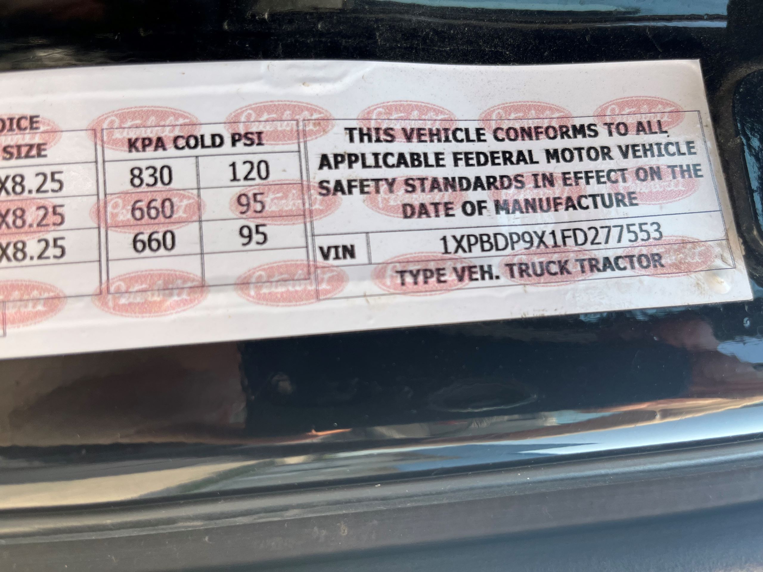 | Serial number : | 1XPBDP9X1FD277553 | ||