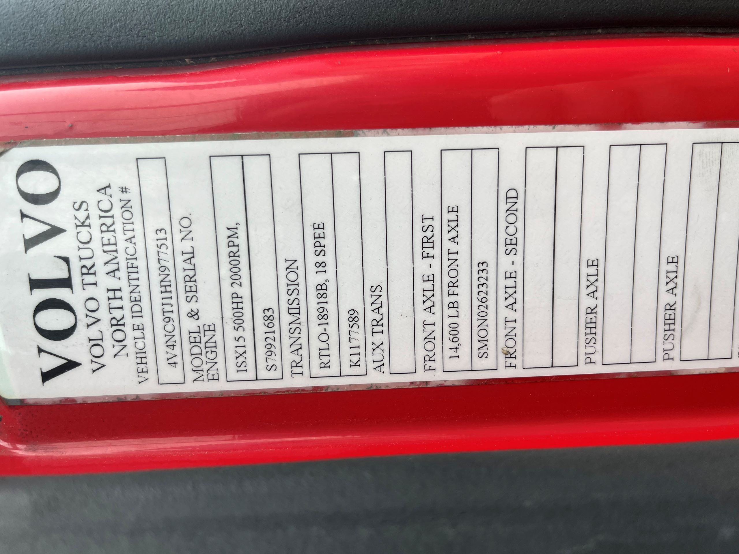 | Serial number : | 4V4NC9TJIHN977513 | ||